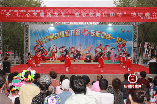 新疆民生网(陈超)7月25日晚,第七社区党支部为丰富辖区居民精神文化生活,促进民族团结,举办龙湖佳苑第二届“齐(七)心共建新龙湖,载歌载舞促”纳凉晚会。