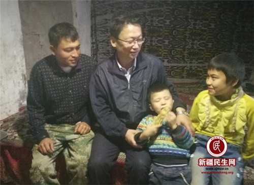 我在一年前刚驻村的时候,就与他们家结为亲戚。给我印象最为深刻的是,当我第一次到他们家时,阿力木江就示意我坐到炕上,他到里屋用幼小的身体背着一个吃饭时用的方桌,我正在奇怪和纳闷的时候,他吃力的把方桌往我所在的炕上挪,我赶紧帮他把方桌放好,他象个大人似的拿着馕放到方桌上让我们吃。我当时就感慨,他小小的年级就很懂事了。后来我一有空就到他们家来。