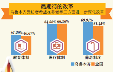 和全国受访者一样,乌鲁木齐受访者感到在收入、养老和医疗方面存在民生困难,其中在住房和子女教育方面的民生困难也比较突出,“健康放心的食品安全”是大家最大的期待。