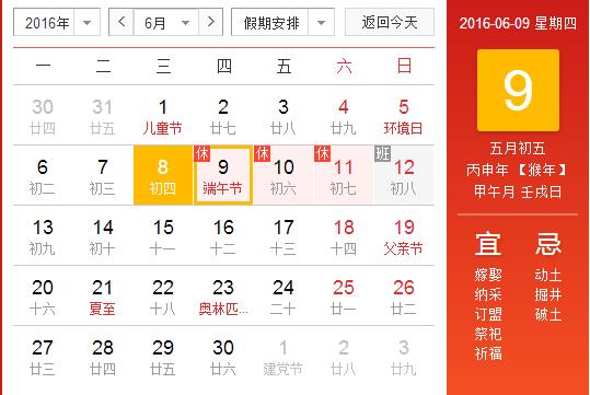 都市消费晨报、亚心网全媒体讯(记者 雅心)5月31日,新疆政府网发布了关于2016年端午节放假的通知,明确6月9日至11日放假调休,共3天。6月12日(星期日)上班。
