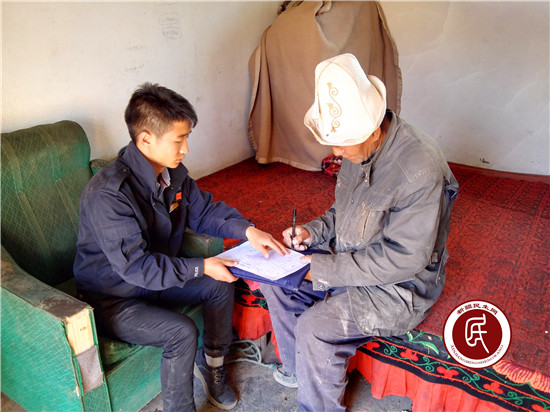 (乡下派库尔干村支部副书记唐德均正细心指导村民确认填写内容)