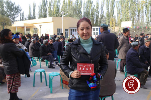 新疆民生网讯 近日,英吉沙县平安家庭评选活动结果揭晓,萨罕乡依坎库勒(6)村45户家庭被评选为“平安家庭”。10月24日,村党支部书记伊米尔奥斯曼·阿卜来提组织召开了隆重的表彰活动,给村民们颁发了“平安家庭”门牌,并号召全体村民向平安家庭学习,遵纪守法、远离“宗教极端思想”、加强民族团结,争创“平安家庭”。