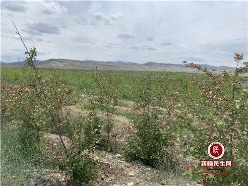 硫磺镇党委委员、副镇长高一豪:“从2017年截至目前,我们绿化荒山近3000亩,主要种植了杏树,苹果树、枫树,海棠树、沙棘树等经济树种。”