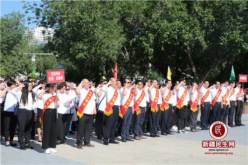 新疆民生网(陈瑞强、张若昭)在第32个国际禁毒日到来之际, 6月26日,克拉玛依市克拉玛依区在市禁毒主题公园隆重举办“聚焦总目标,打赢新时代禁毒人民战争,争创全国禁毒示范市”为主题的禁毒工作大会。此次大会由克拉玛依区禁毒委员会主办,胜利路街道党工委、办事处承办。