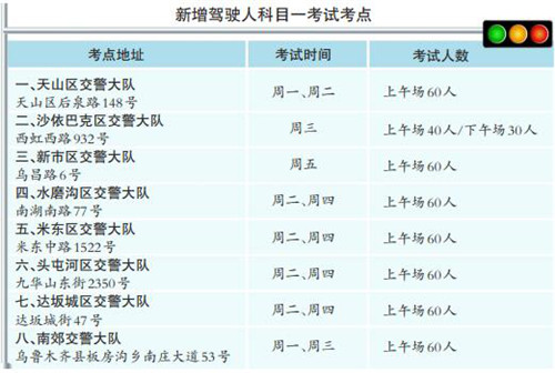 乌鲁木齐新添七处驾驶人科目一考试考点