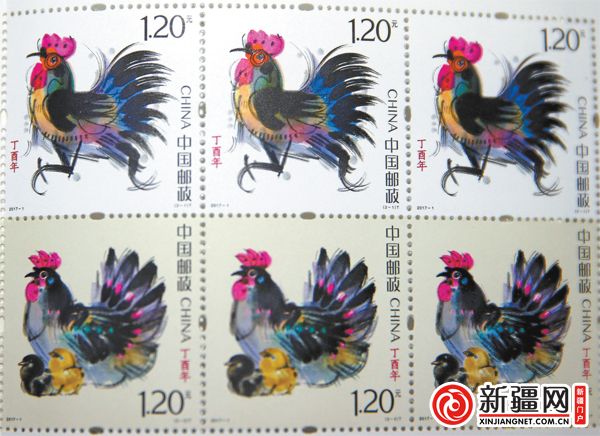 今年是农历丁酉年,即十二生肖的鸡年,《丁酉年》特种邮票1套2枚,图案名称分别为:意气风发、丁酉大吉,全套邮票面值2.4元,由著名艺术家韩美林创作。
