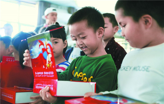 15日,在沙依巴克区西山片区管委会永乐一巷社区,辖区小朋友收到了免费发放的连环画。 (记者蒋晓摄)