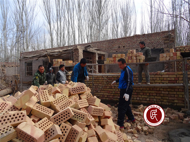 新疆民生网讯,3月2日,克州人社局第三批“访惠聚”活动住玉麦乡8村工作组在走家入户中,了解到阿地力·买买提家马上要修建房子,于是总领队努尔卡那提·艾木如拉同志带领住村工作组员主动带着铁锹来到阿地力·买买提修房工地,在施工人员的安排下,热火朝天帮助其“递砖头、铲混泥土、砌毛坯墙,打下手”,真正融入到与村民同吃同住同生活同劳动中,促进了住村工作组同村民之的感情交流。
