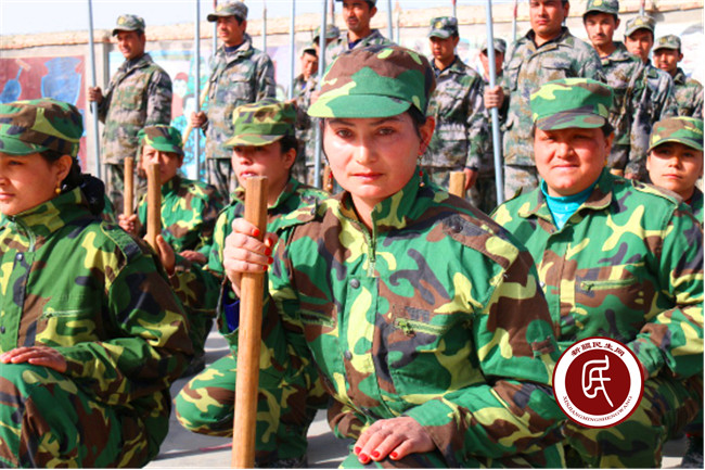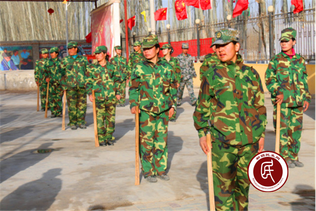 3月4日上午,自治区发改委住村工作组在村党支部书记买买提明·艾则木的陪同下,观看了本村女民兵的训练。20余名70、80、90后青年组成的女民兵方队迈着整齐的步伐进入训练场地,先后进行跑步、立定、敬礼、军姿等基本动作训练,又表演了棍棒博杂、警棍盾牌操练等。她们身穿迷彩服,英姿飒爽,精神抖擞,口号铿锵有力,在教官的指挥下,一丝不苟地演练着每一个动作,展现了女民兵们昂扬的士气和良好的精神风貌,显示出女民兵们履行维稳使命、为建设美丽乡村的信心和决心。那巾帼不让须眉的气势绝不亚于男民兵,这场景感动和激励着每一名观看演练的住村干部。