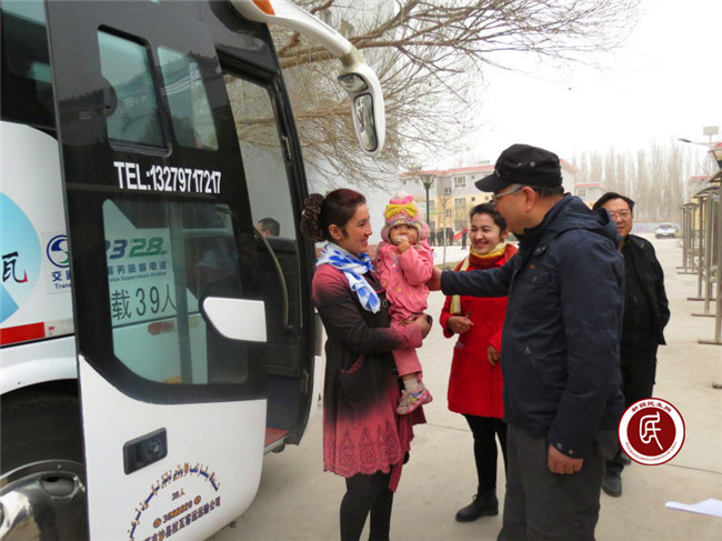 欢送会结束后,加依村村民努尔妮萨.约塞尹和姐姐伊敏古丽.约塞尹在妈妈的陪伴下,和本村的奥布力塔力甫、西尔艾力以及其他青年一起踏上了前往阿克苏工业城的汽车。约塞尹妈妈抱着姐姐不满一岁的孩子,坚持要去给姐妹俩买一些路上吃的东西,工作组人员告诉约塞尹妈妈,工作组已经安排好了一切,请她放心,约塞尹妈妈这才安心地上了车。儿行千里母担忧,一个人在外打工,牵动的是全家人的心。西尔艾力的哥哥也要去给弟弟送行,想了解一下弟弟的工作,回来给村里那些想要出去就业的年轻人描述外面的广阔天地,下次也要争取这样的就业机会。