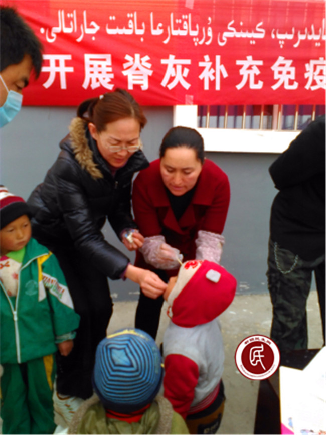 新疆民生网讯,“关爱儿童、我们有责”是克州疾控中心住乌恰县吉根乡喀拉铁列克村“访惠聚”工作组结合行业优势,开展2016年第一轮脊髓灰质炎强化免疫接种工作的主题。
