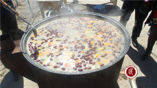 做饭的大师傅挽起袖子,架起大铁锅。