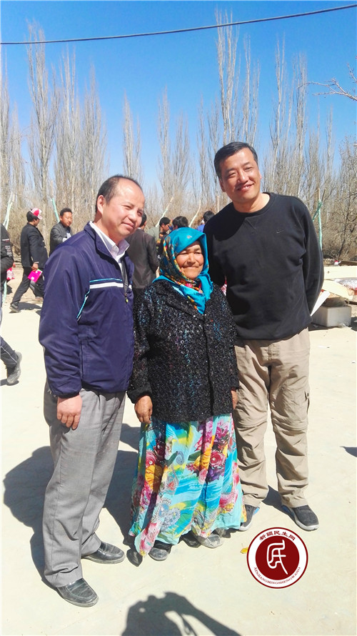 工作组成员与老党员艾姆拉罕大妈合影