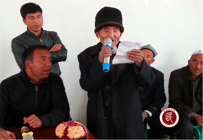 作为村里尊敬的长者,艾合买提·吾不力卡斯木在诺鲁孜节致辞