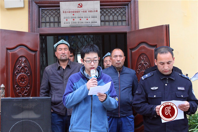 新疆民生网讯 村里每逢周一升国旗,工作组都起的特别早,而且有点小激动,为什么呢?这是因为工作组成员自从住村以来就坚持每周一轮流在村民升国旗的仪式上进行宣讲,面对300多村民,既要把宣讲主题提前拟好,贴近村民的日常生活,又要把握宣讲的方式,做到通俗易懂,同时要和双语干部有很好的配合,争取让村民都能听懂、都能理解,所以每一位工作组成员都倍加珍惜宣讲的机会,积极准备,全心投入。