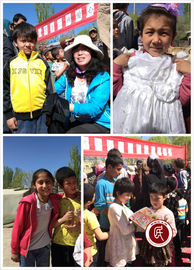 爱心捐物单位是新疆教育学院实验小学五年级二班,该班许子诺的妈妈是阿热兰干村的住村干部,一张朋友圈里村里孩子破旧衣着的照片揪着同班同学妈妈们的心,在班主任老师的号召下,五年级二班开启了“大手拉小手,温暖你我他”爱心衣物捐赠活动。该班许多同学都用零用钱买了新文具盒捐了出来,希望远方的小伙伴用上好看的文具盒好好学习。同学们你一个文具盒一个书包,我一本书一件衣服,短短的一周时间,爱心活动就筹集了衣物600件,文具100件,书本100本。