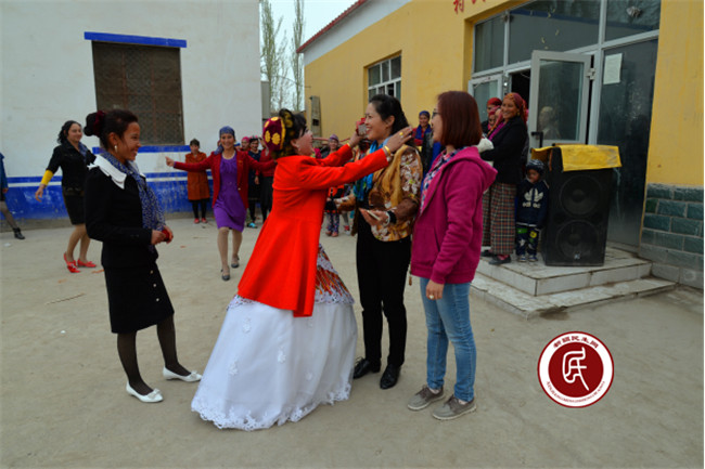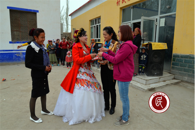 巴哈力且木是村里大小活动的主持人,漂亮大方,多才多艺,通过各项节日庆典活动,她和工作组成为了很好的朋友,早早给我们发来了结婚请帖,说工作组就是她的娘家人,希望我们一定要参加她的婚礼。看着她热切期盼的眼神,大家决定要给巴哈力且木办一个风风光光的婚礼。