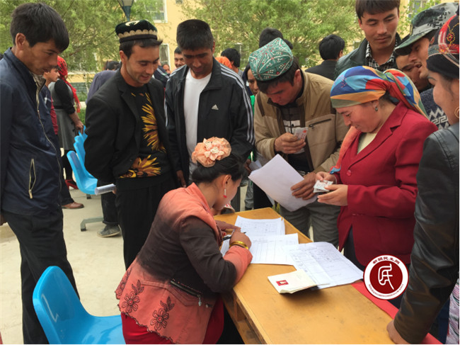 招聘会上,阿热兰干村的约尔妮莎·古丽艾则孜拿着服装缝纫工技能证书和个人信息表在几家招聘单位前转了又转,不停地与招聘单位负责人了解信息,终于选择了一家自己满意的单位交上了自己的信息表。约尔妮莎以前有外出务工的经历,尝到过出去打工的甜头,在外务工时还参加了服装缝纫技能培训,是一名有专业技能的缝纫熟工。约尔妮莎跟工作组自信地说道:“我家里地少,与其在村里闲着,不如出去打工挣钱,我有技能,我能靠自己的双手过上好日子。”