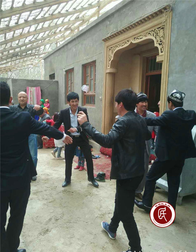 新疆民生网讯 4月10日,春风和煦,一大早工作组在村里的试验田忙碌着。临近中午,全体组员穿戴节日盛装,前往村民吐乎斯也提家参加他儿子的婚礼。