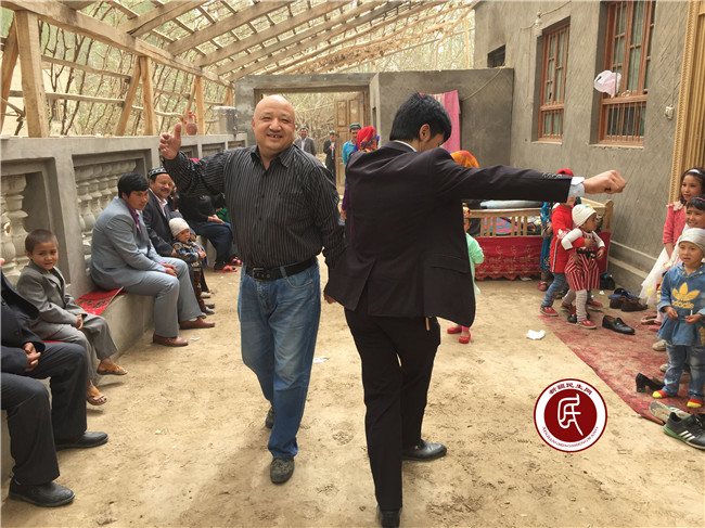 快乐的音符响彻干净整洁的小院,高高的葡萄架上新发的嫩芽吐露着春天的气息。这已经是新疆教育学院住洛浦县山普鲁镇巴什克依阔村工作组自2月25日住村以来参加的第5场婚礼,工作组与村民在婚礼上跳起欢快的舞蹈,引领维吾尔族传统文化重放光彩。
