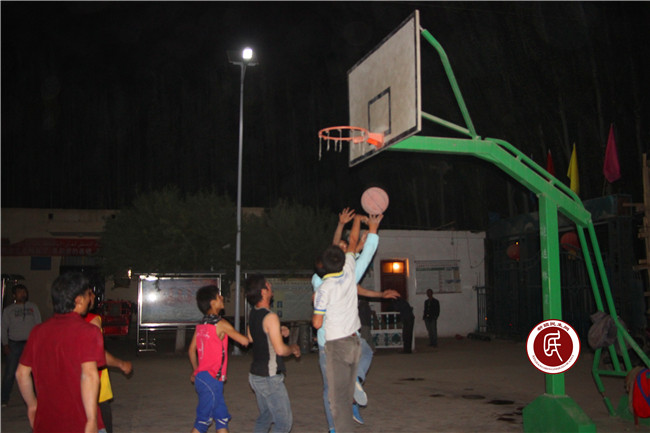 现在晚上,来村委院子里的村民越来越多。青年们经常举行篮球比赛,村民阿不都海拜尔说:“白天没空打篮球,现在晚上这里亮堂堂的,我们可以好好打打比赛,锻炼身体了。”有了“灯光球场”,最近举行的山普鲁镇舞蹈比赛,每天晚上100名村民在院子里练习集体舞,场面很是壮观。孩子们跟着爸爸妈妈来到村委院子里嬉戏打闹,村民们欣喜的看着这一变化,不断地称赞现在的美好生活。