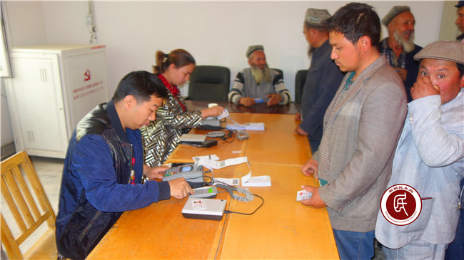 新疆民生网讯(通讯员 艾依塔吉) 4月25日,阿克陶县人社局住玉麦乡库尔巴格村“访惠聚”活动工作组积极配合县农业银行工、乡劳保所工作人员、村“两委”班子给参加城乡居民养老保险的村民发放、激活社会保障卡、并给他们宣传城乡居民养老保险政策、社保卡的功能和使用方法。