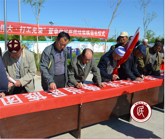 新疆民生网讯 (通讯员 杨晓忠)5月1日下午,昌吉州粮食局住奇台县吉布库镇二马场村工作组与村“两委”共同举办了以“劳动伟大·打工光荣”为主题的“庆‘五·一’活动暨争做民族团结进步模范签名仪式”活动。