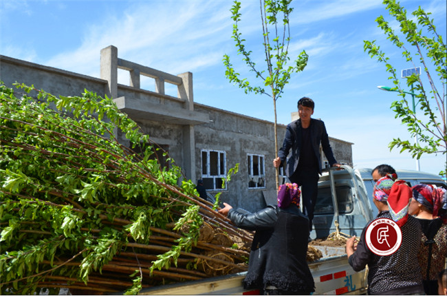给牧民分发果树苗