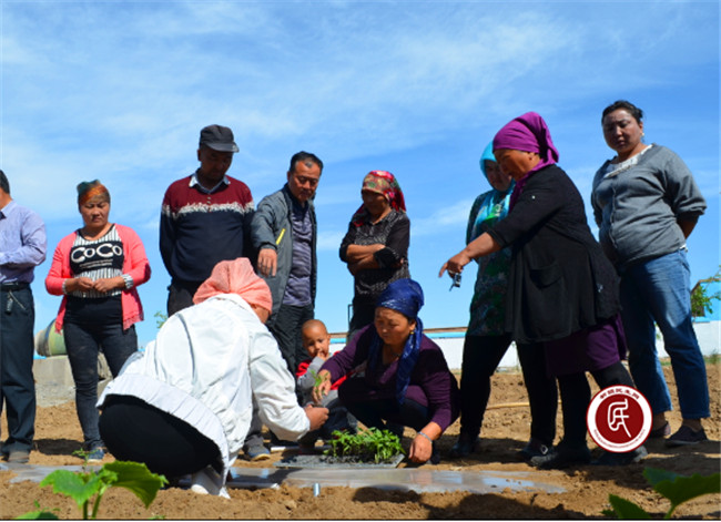 庭院经济现场观摩会上,技术员手把手教牧民种菜