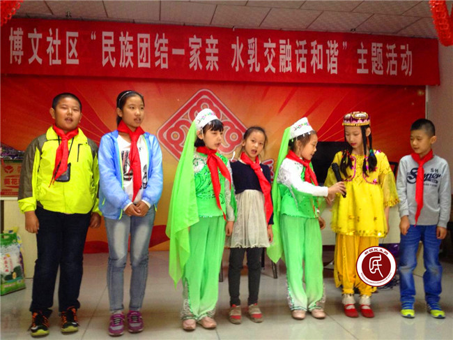 结合今年“民族团结进步年”,工作组和社区在“儿童之家”中开展了一系列民族团结教育活动。活动中,社区“儿童之家”少数民族小朋友及居民代表还带来了自编自演的、反映民族团结主题的歌舞节目,工作组还在活动中穿插民族团结有奖知识竞猜,使孩子们在寓教于乐中增长民族团结知识。