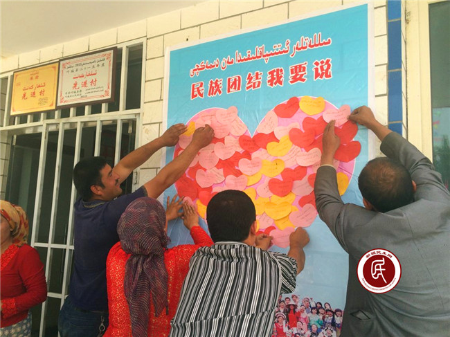 搭建微平台传递“民族情”。各级住村工作组以民族团结为主题,开展基层群众喜闻乐见的文体活动,引导各族干部群众互相走动、加强交往,在活动中增进了解、在互帮互助中促进民族感情。地区旅游局住叶城县洛克乡徐乌堂村工作组与村民一起举办“共居·共学·共事·共乐”联谊会,开展各类趣味游戏活动,进行民族团结结对子、交朋友、成“亲戚,同村民共跳欢乐的麦西来普,在欢快愉悦的气氛中拉近了关系,增进了友谊;叶城县委宣传部住铁提乡阿亚格托普贝格村工作组开设“民族团结我要说”微专栏,让村民群众将心里的民族团结真心话写在纸上进行上墙,并定期不定期对贫困家庭、贫困学生进行帮扶,在寓教于乐、为群众解决实际困难过程中促进民族团结,营造各族群众交流、互助、交融的和谐“民族情”。