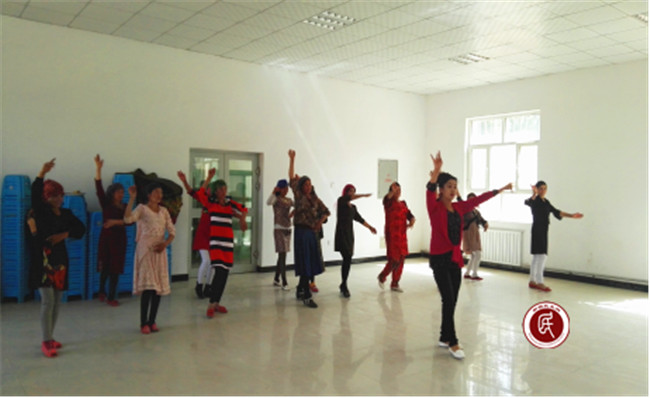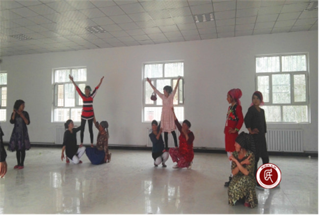 当得知文艺队的女孩名字里都有一个“古丽”时,工作组就给这支队伍取名为“美丽古丽文艺队”。今天老师教的是现代舞《欢乐的桑巴》,短短一天时间,演员们就学会了这支舞蹈,老师和工作组的同志们都情不自禁地为他们竖起大拇指。三天后,文艺队还将学习跳健美操,这对以往只跳过传统民族舞蹈的他们来说,真是又一次勇敢的尝试,不过大家相信,在不久的将来,在现代文化魅力的感召下,尤喀克兰干村的“美丽古丽”们将和她们的舞蹈老师一样美丽、现代而充满自信!