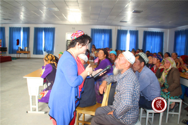 授课过程中祖老师积极与村民互动,妇女后备干部努尔妮萨说:“我们对暴力恐怖行为感到非常憎恨,他们越是破坏,我们越是要搞好团结,我们的心和汉族同志的心是一样的”。村民麦麦提•沙吾提说:“老师讲的好,今天听了以后,我们好好的学习,更好的搞好民族团结。极端化宗教活动、破坏分子,是我们共同的敌人,好好的打击。”