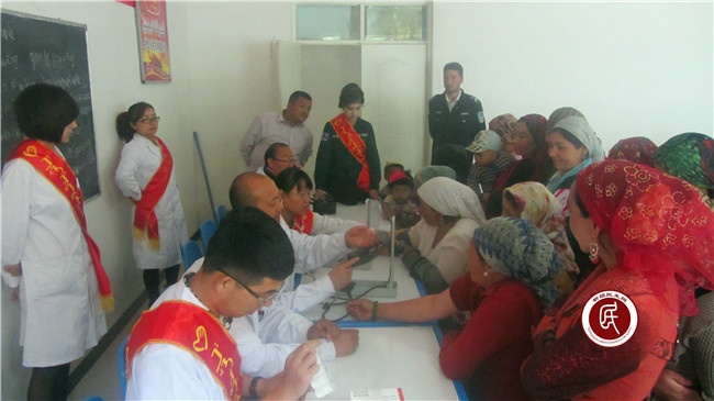 自治区人大常委会机关住村工作组,针对村里居民就医困难、健康知识贫乏,且不少村民存在小病不治,结果拖成大病的现象,便将县人民医院医疗专家请到村里,为村民开展免费义诊送健康活动,以解决村里缺医少药、老人多、就医困难的问题,让村民在家门口就能接受健康知识教育。义诊现场 ,前来咨询就诊的村民络绎不绝,医务人员热情为村民提供诊治、免费送药、发送健康教育资料等服务,并耐心解答群众疑惑。