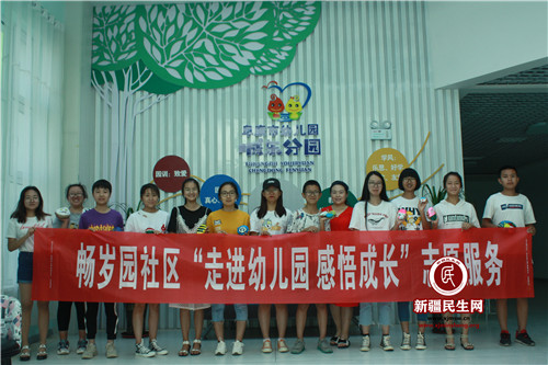 新疆民生网(马士员)为了进一步弘扬“奉献、友爱、互助、进步”的志愿者精神,畅岁园社区组织返乡学生志愿者服务队十余人来到阜康市城东幼儿园,积极开展志愿服务活动。